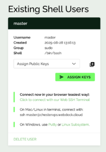 You can either click on the keyboard icon on the server screen or the link in the Shell Users page.