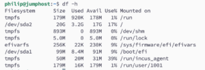 In most cases, the above commands should help bring the agent online. You can verify if the commands worked by running “df -h” on the commandline. You should see something like this.